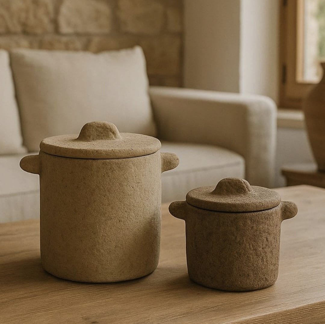 כלי בטון חום בעבודת יד, בגימור מחוספס וטקסטורה טבעית המעניקים לו מראה נקי ועל־זמני. מתאים לאחסון דקורטיבי, לצמחייה קטנה או לפריטי עיצוב, ומשתלב בצורה מושלמת בעיצוב ביתי חמים ומודרני.