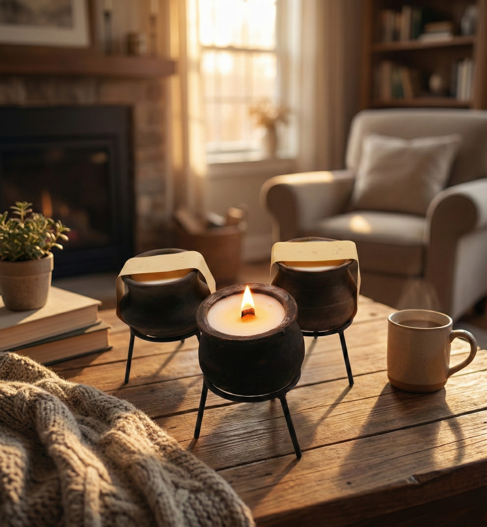 הוסיפו נגיעה כפרית וחמימה לביתכם עם נר האווירה שלנו, הנתון בתוך כלי חרס שחור בעל מראה עתיק ואותנטי. כל כלי הוא יחיד במינו ומונח על מעמד ברזל מעוצב המוסיף גובה ואופי. הנר, עשוי שעווה איכותית עם פתיל עץ (או כותנה, בהתאם), יוצר אווירה מרגיעה ונעימה בכל חלל. פריט דקורטיבי מושלם לסלון, לחדר השינה או כמתנה ייחודית.