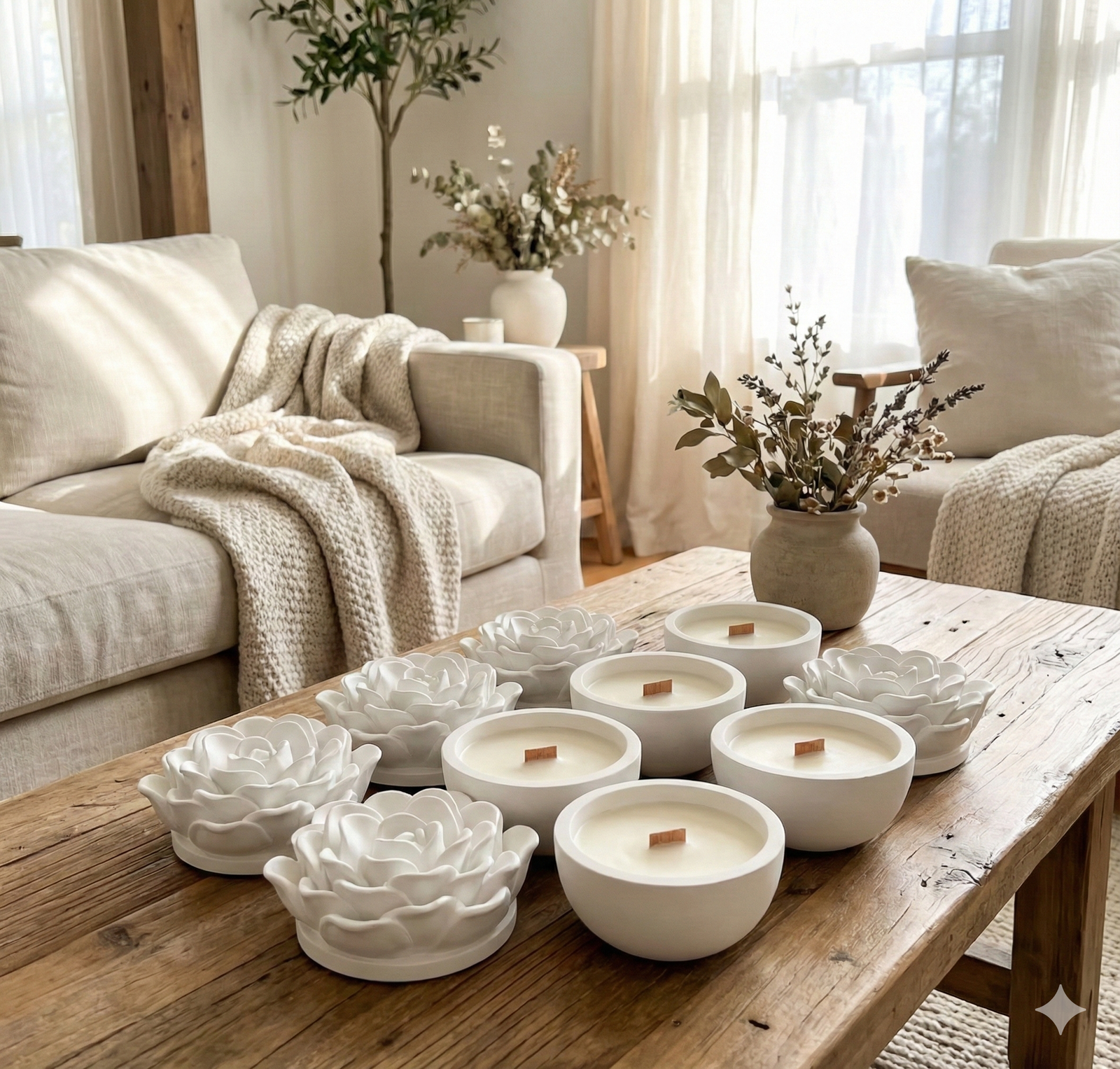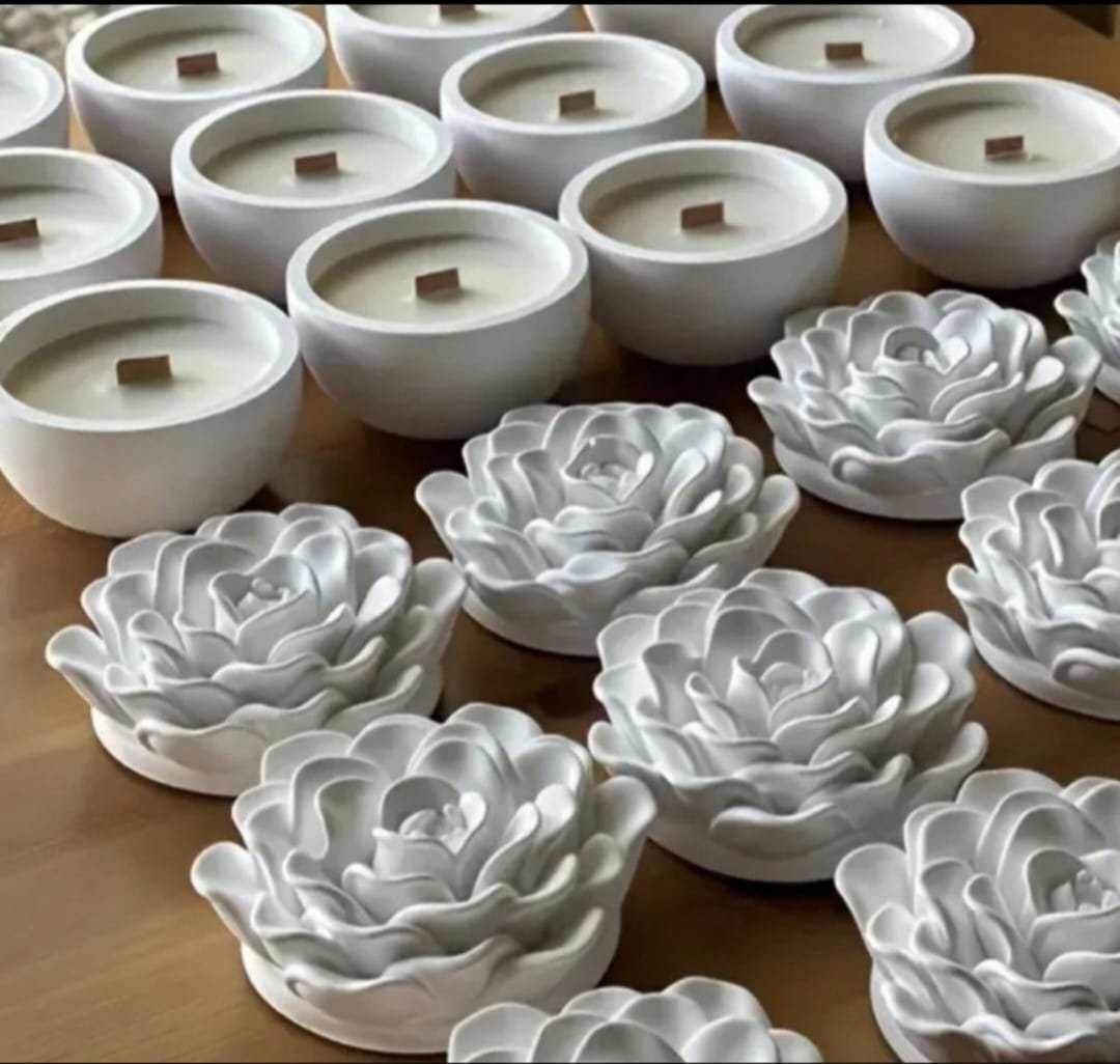 יצירת אמנות קטנה אצלכם בסלון. נר אווירה יצוק בכלי בטון לבן בגימור מט, המגיע עם מכסה תלת-ממדי מפוסל בצורת פרח. השילוב המושלם בין המראה התעשייתי של הבטון לרכות של הטבע. מגיע עם פתיל עץ למראה יוקרתי ובעירה נקייה.