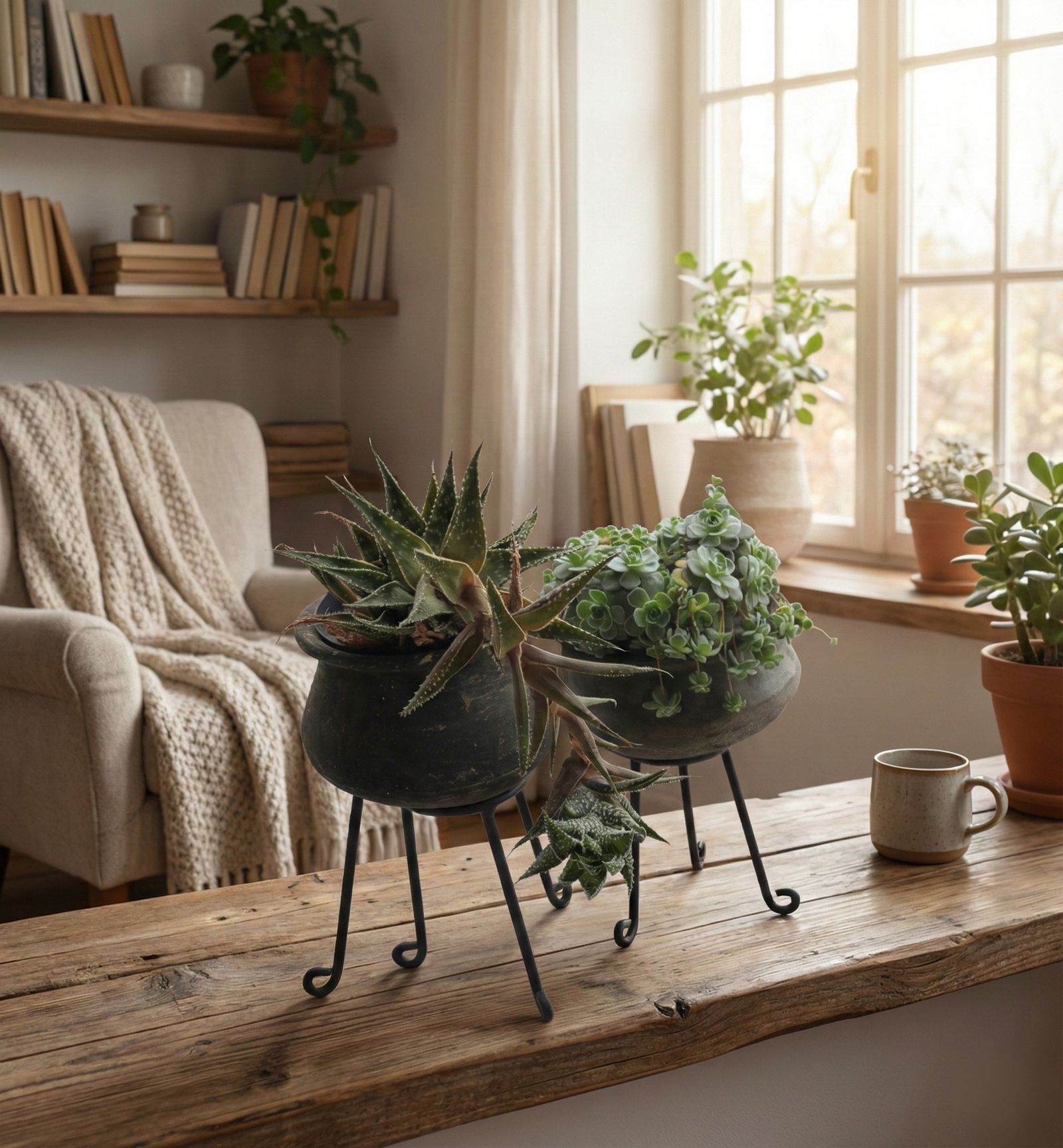 נגיעה טבעית ואותנטית הכניסו חיים וסטייל לבית עם סוקולנט טבעי, הנתון בכלי חרס שחור בעל מראה עתיק ומחוספס. כל כלי הוא בעל אופי ייחודי, והסוקולנטים מגיעים במגוון סוגים וצורות משתנות – כך שכל עציץ הוא הפתעה ירוקה וחד-פעמית. פריט דקורטיבי מושלם שמוסיף חמימות כפרית וקל מאוד לטיפול.