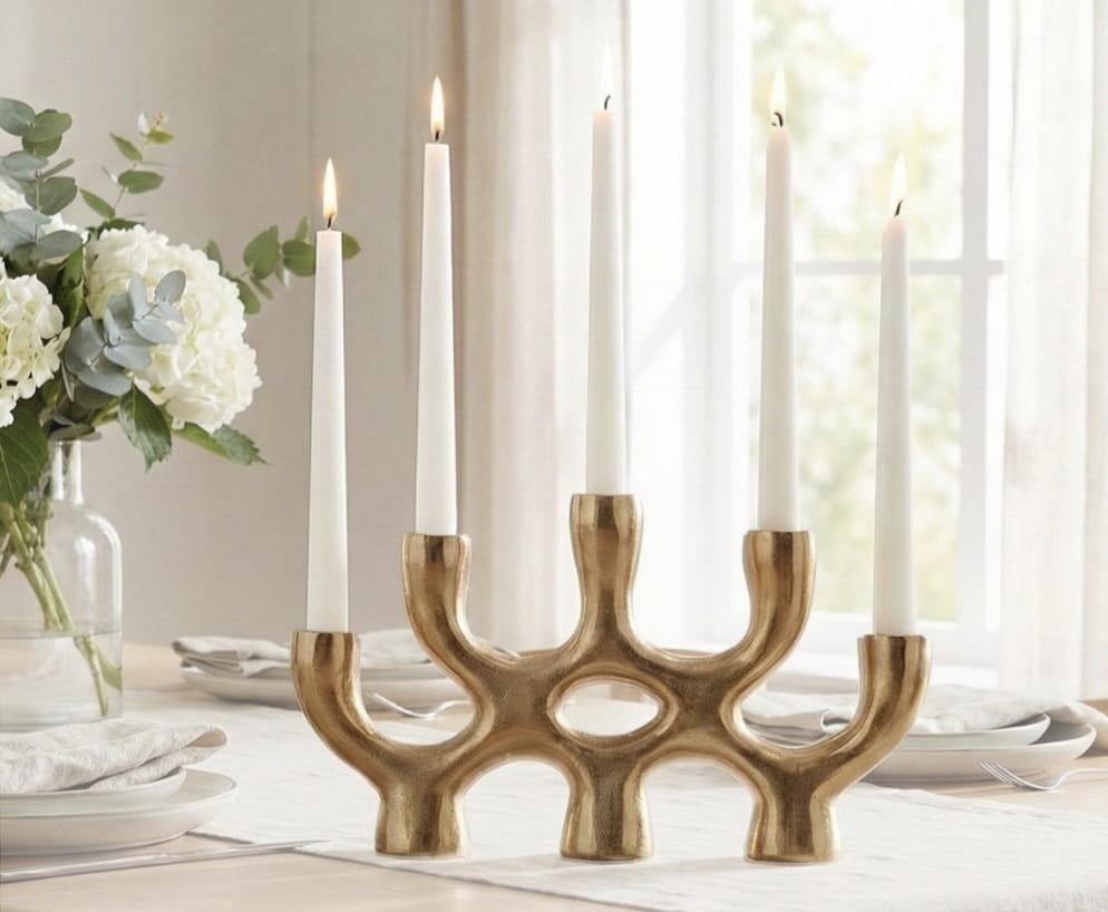 פמוט אלומיניום בעיצוב אלגנטי ונוכחות מודרנית, המשלב קווים רכים עם גימור יוקרתי. מתאים לשולחן אוכל, קונסולה או מדף, ומוסיף אור חמים ואווירה מזמינה לכל חלל.