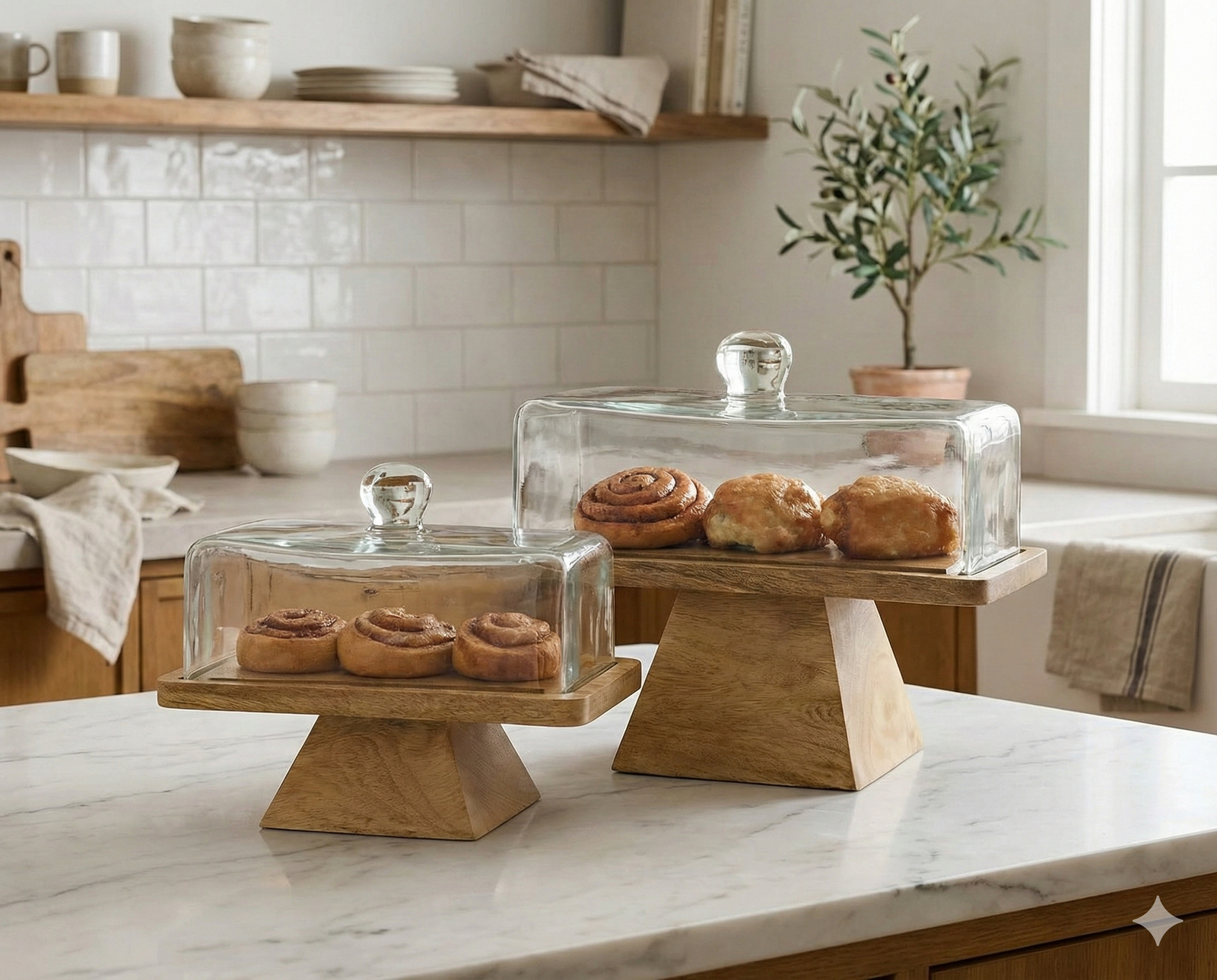 השילוב בין בסיס העץ לזכוכית השקופה יוצר נוכחות שקטה ומדויקת, המתאימה לקונסולה, מדף, שידה או שולחן סלון.