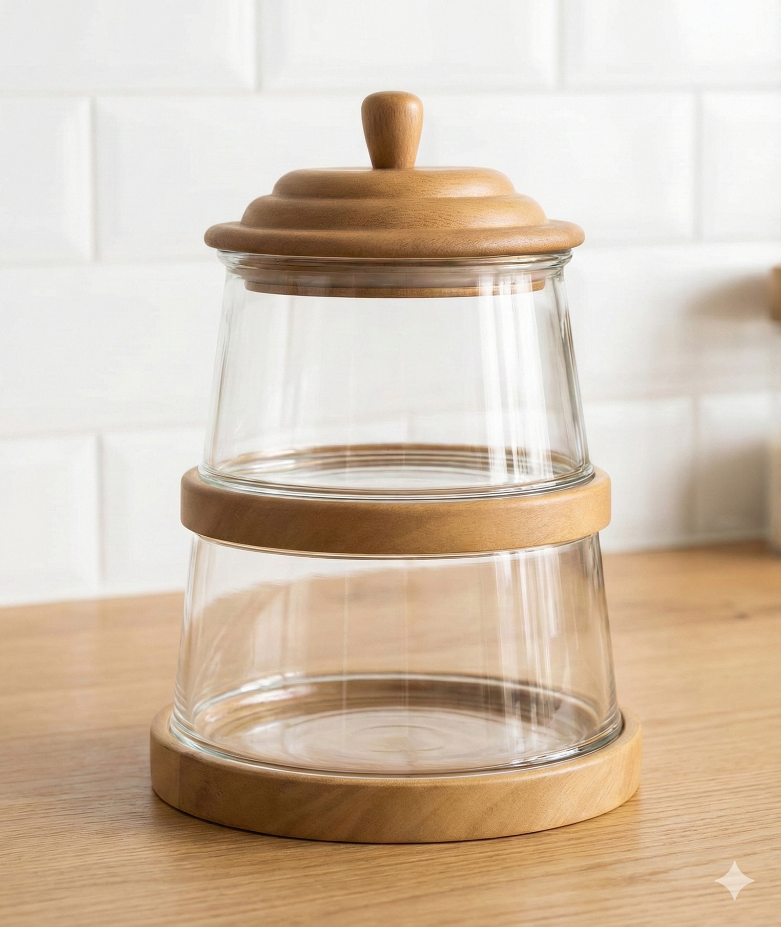 מגדל 2 קערות עץ זכוכית